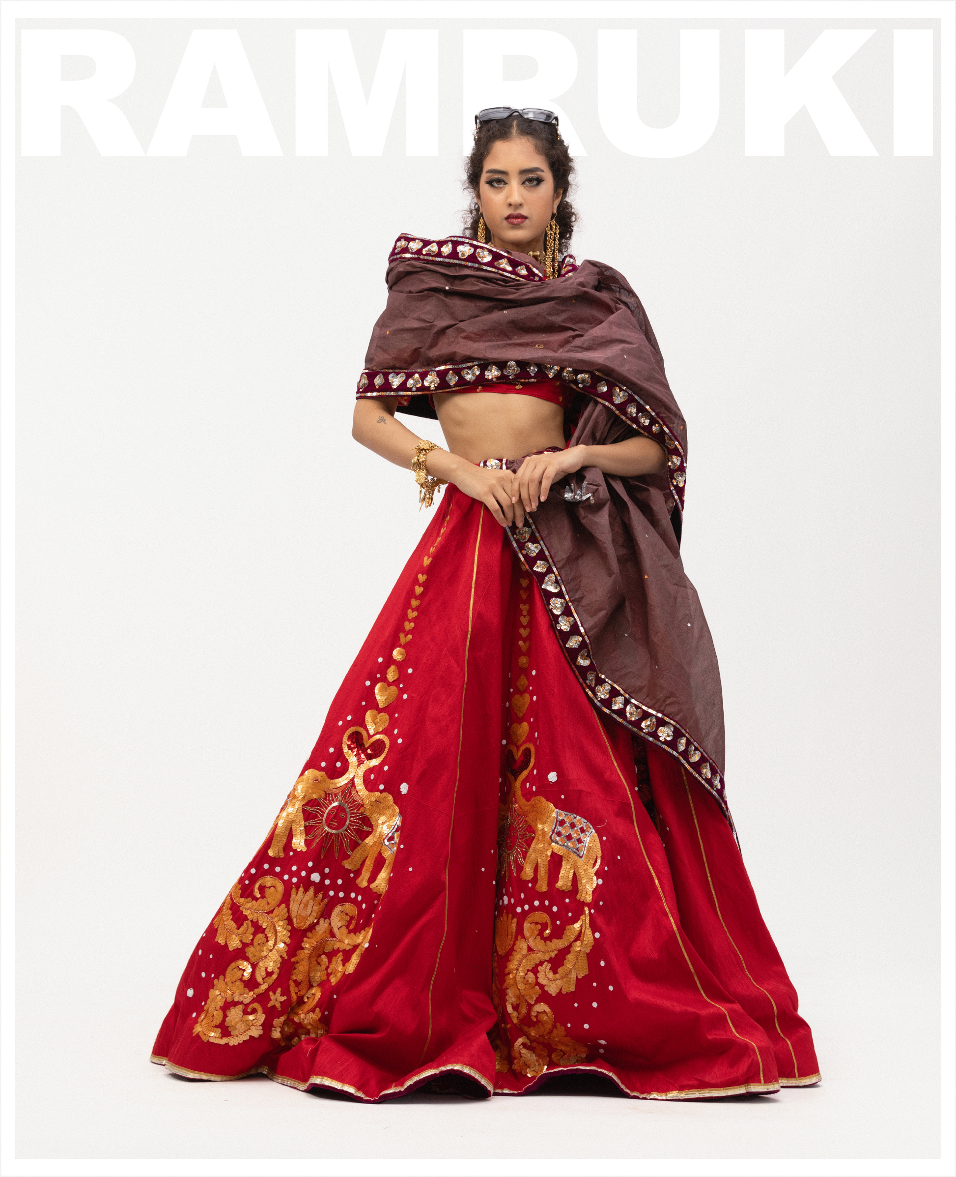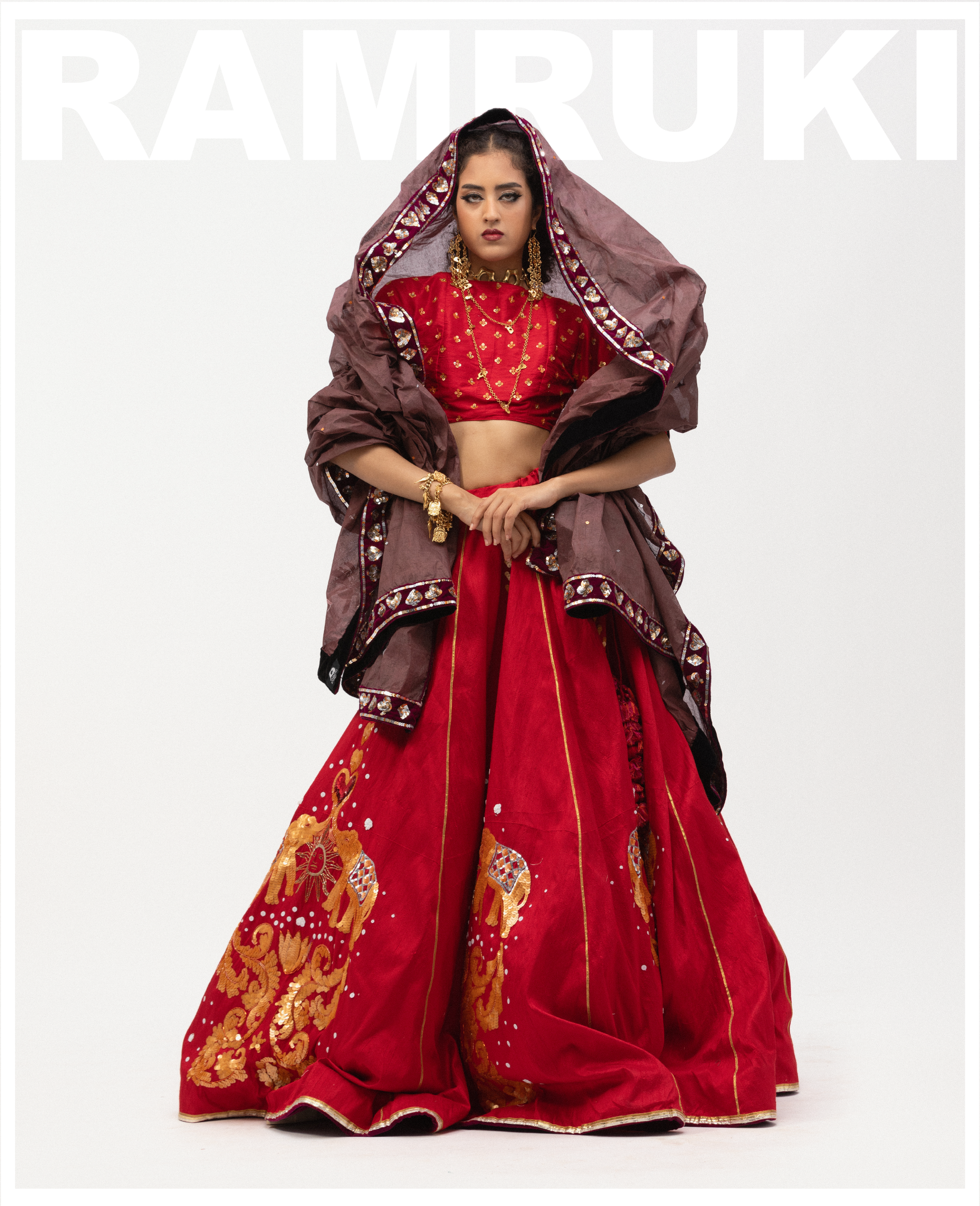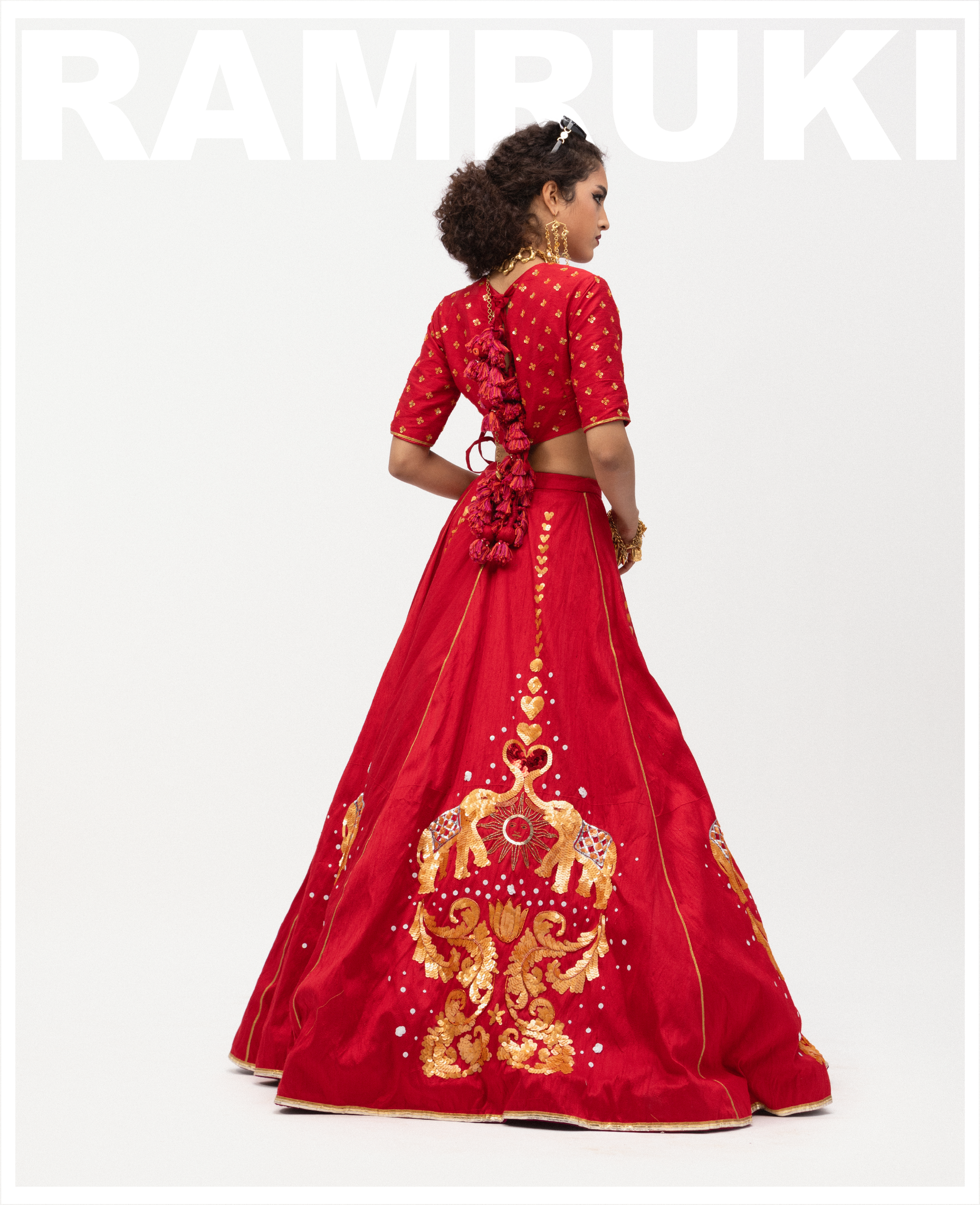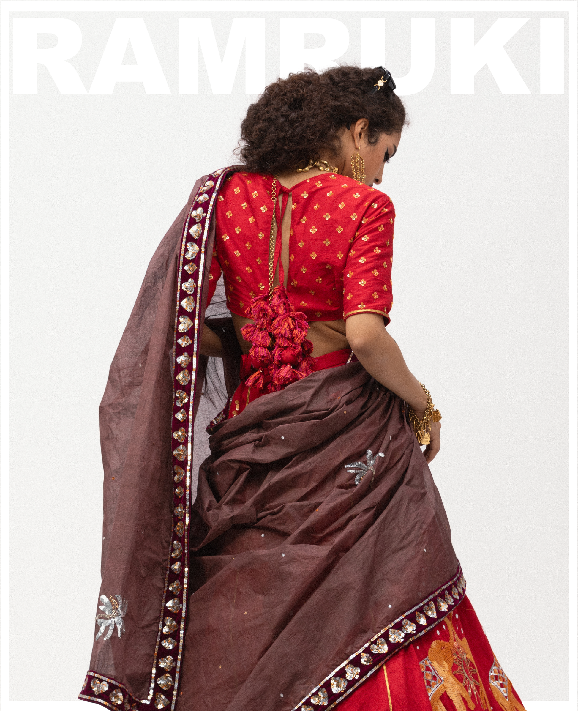 Lehenga Set : Raw Silk Lehenga, Raw Silk Blouse, Organdy Dupatta.