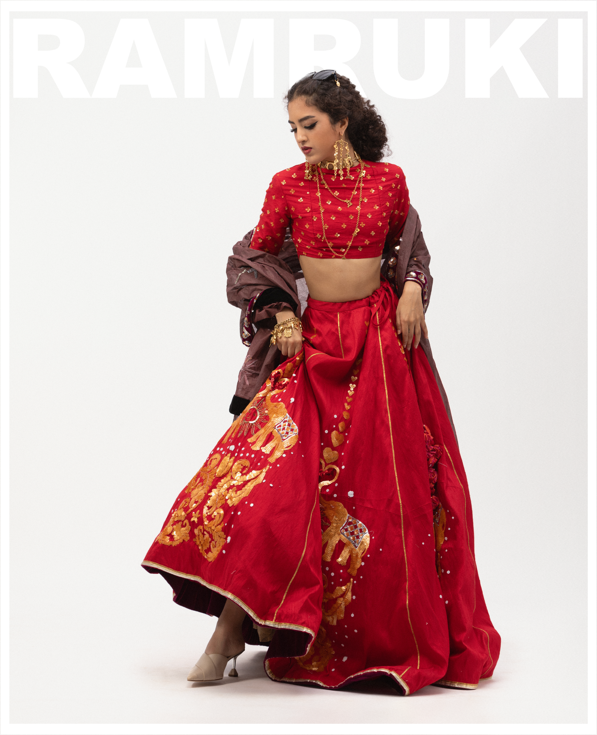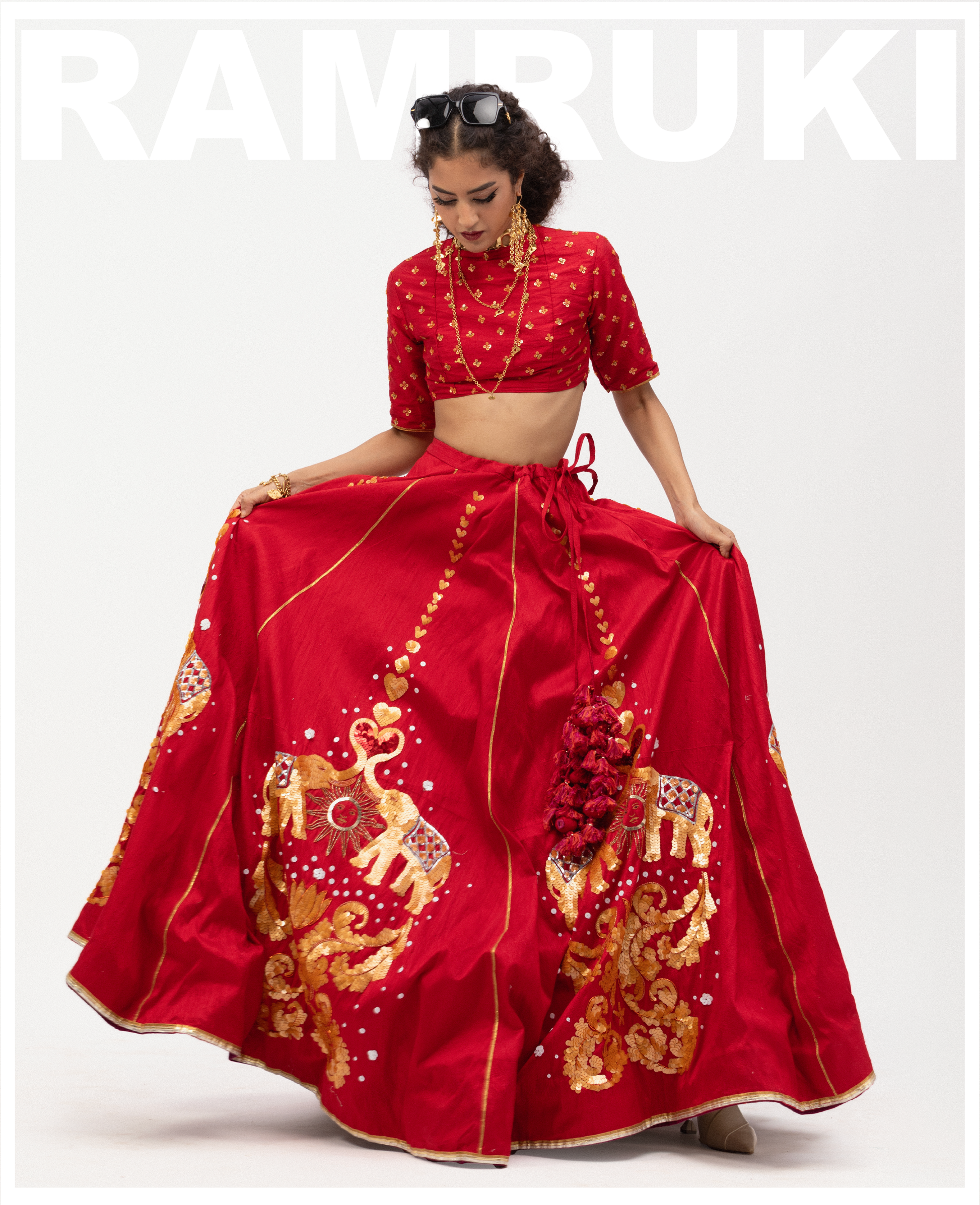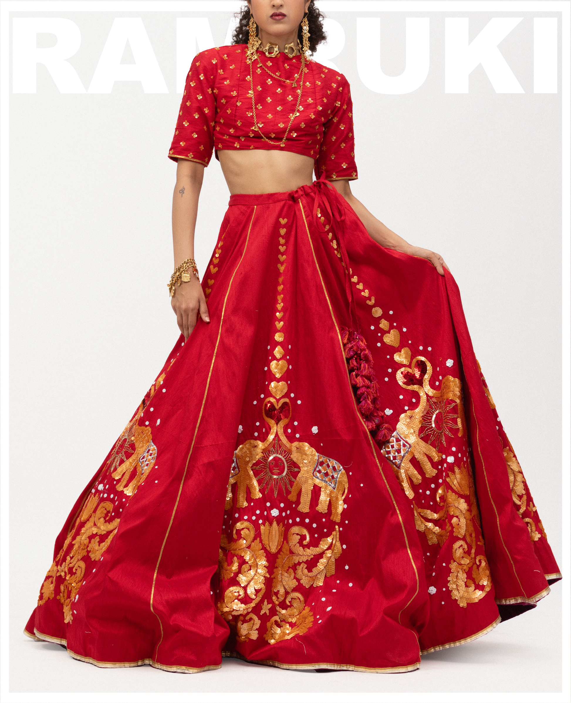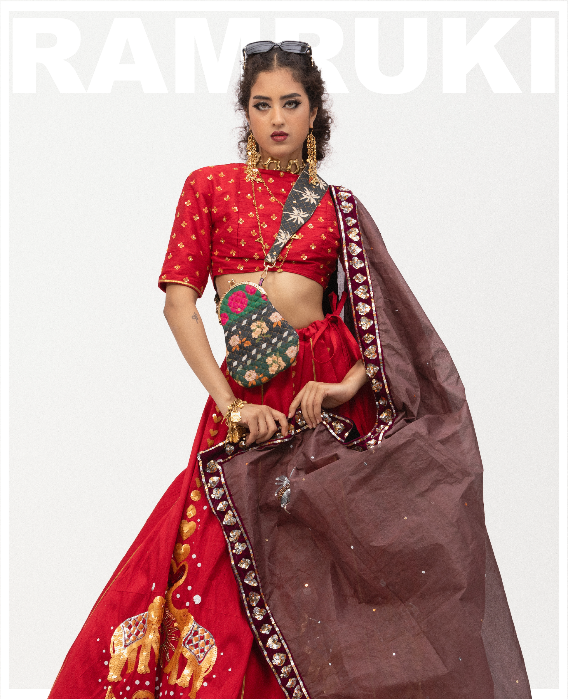 Lehenga Set : Raw Silk Lehenga, Raw Silk Blouse, Organdy Dupatta.