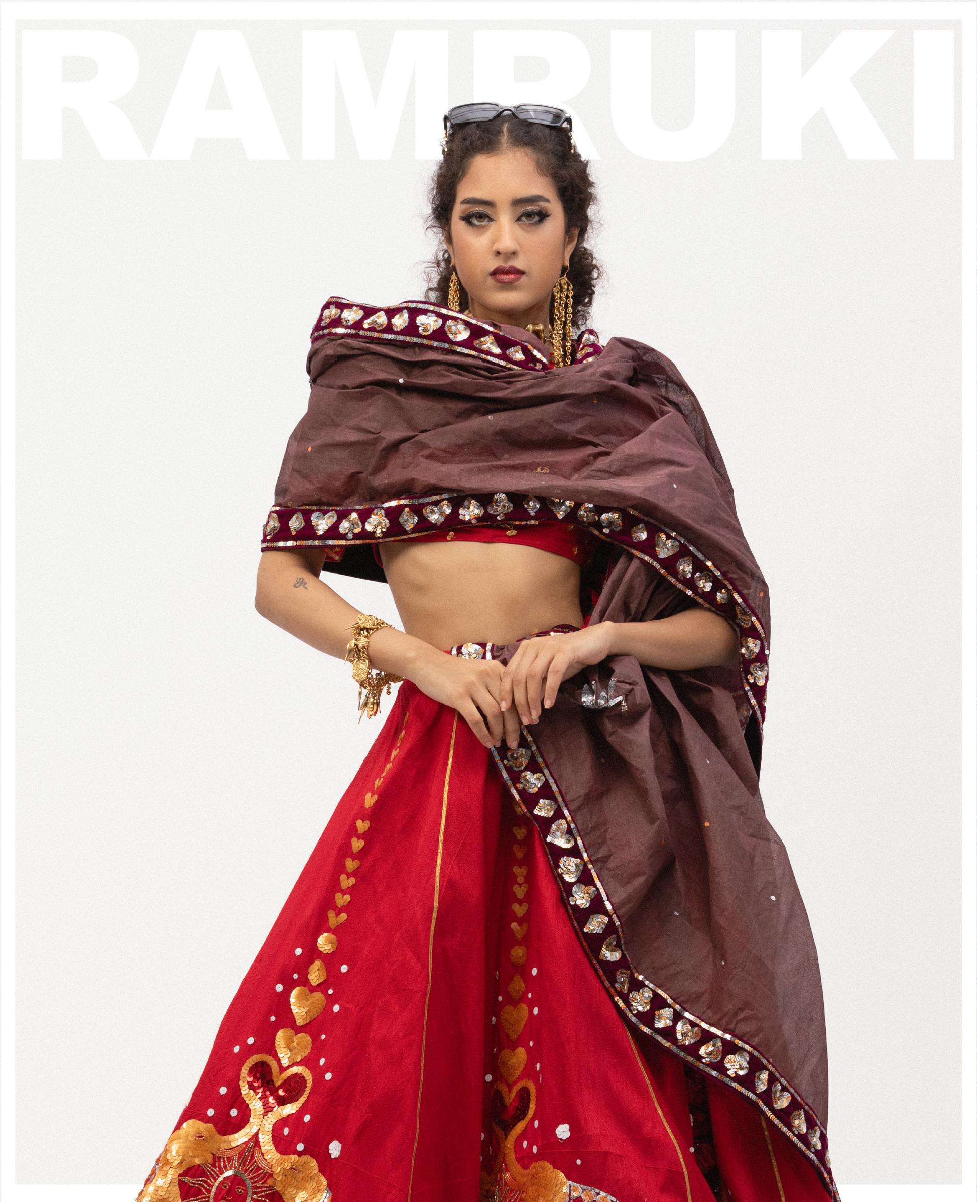 The model is wearing a Lehenga with a separate Cancan Skirt.