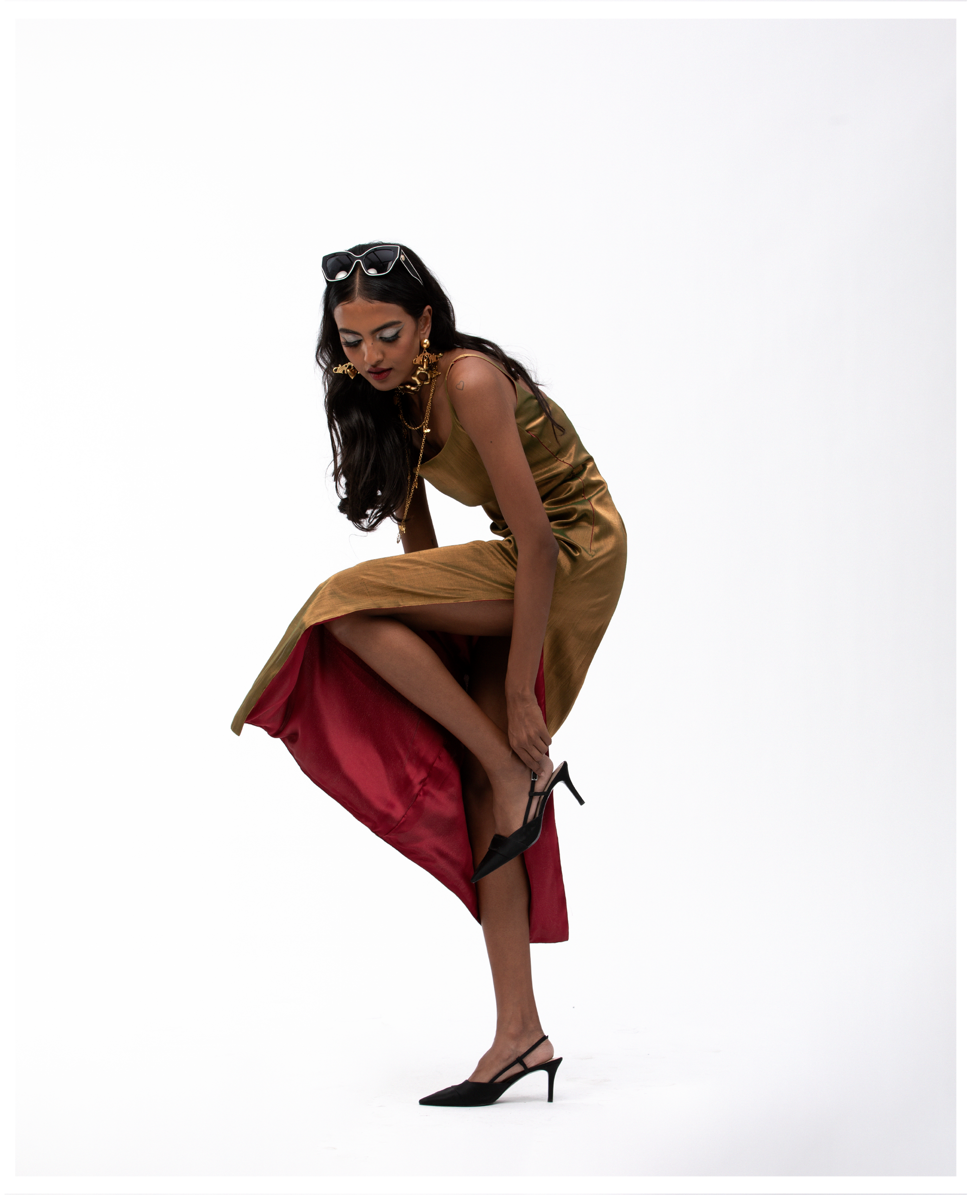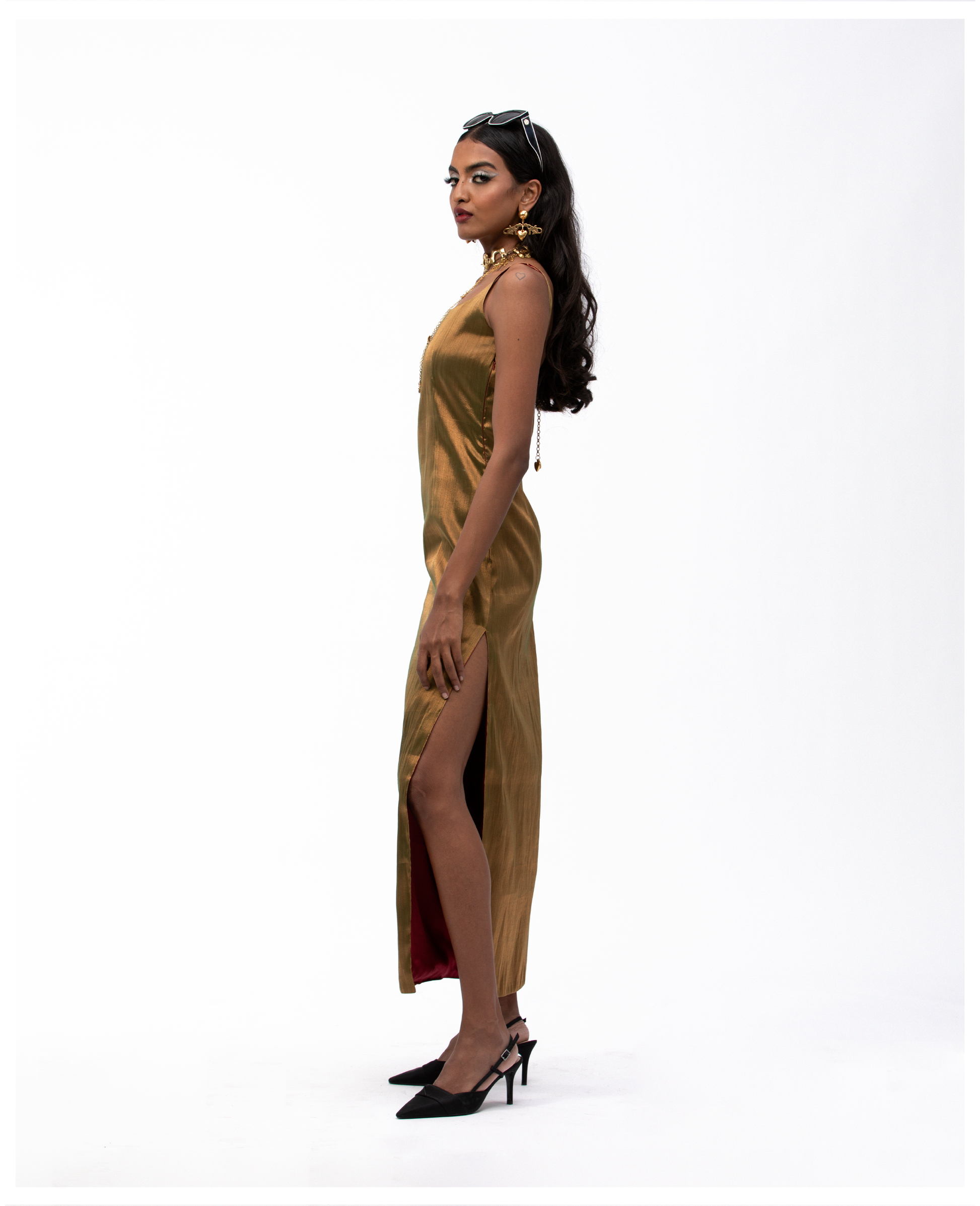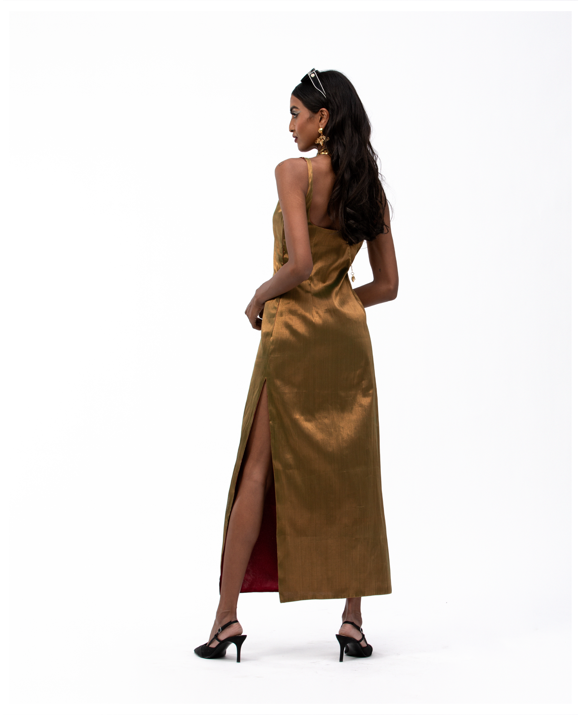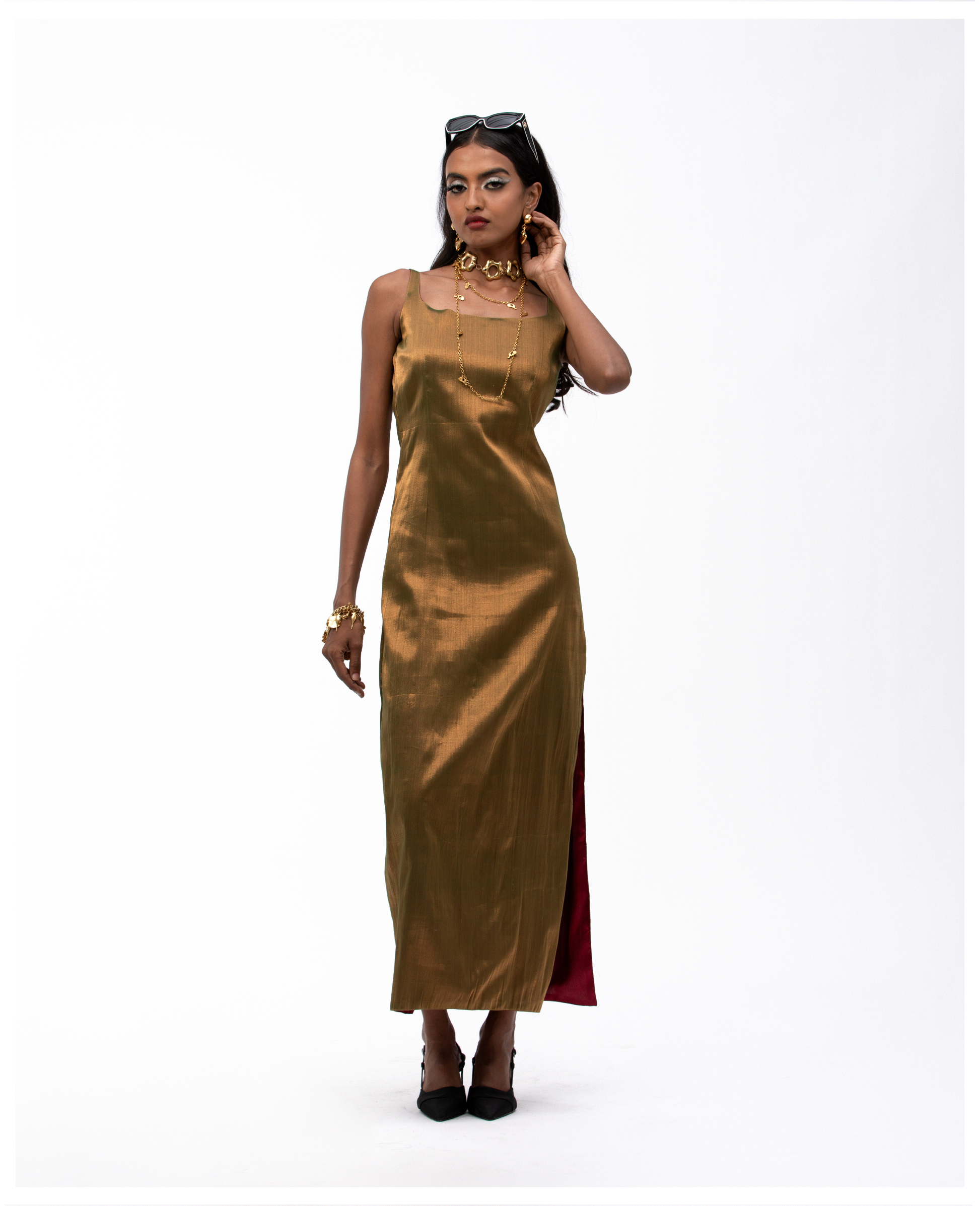 Long Day but Night Dress by Ramruki, made using Gold Tissue, and lined with Satin designed just for you with loads of love, and sunshine.