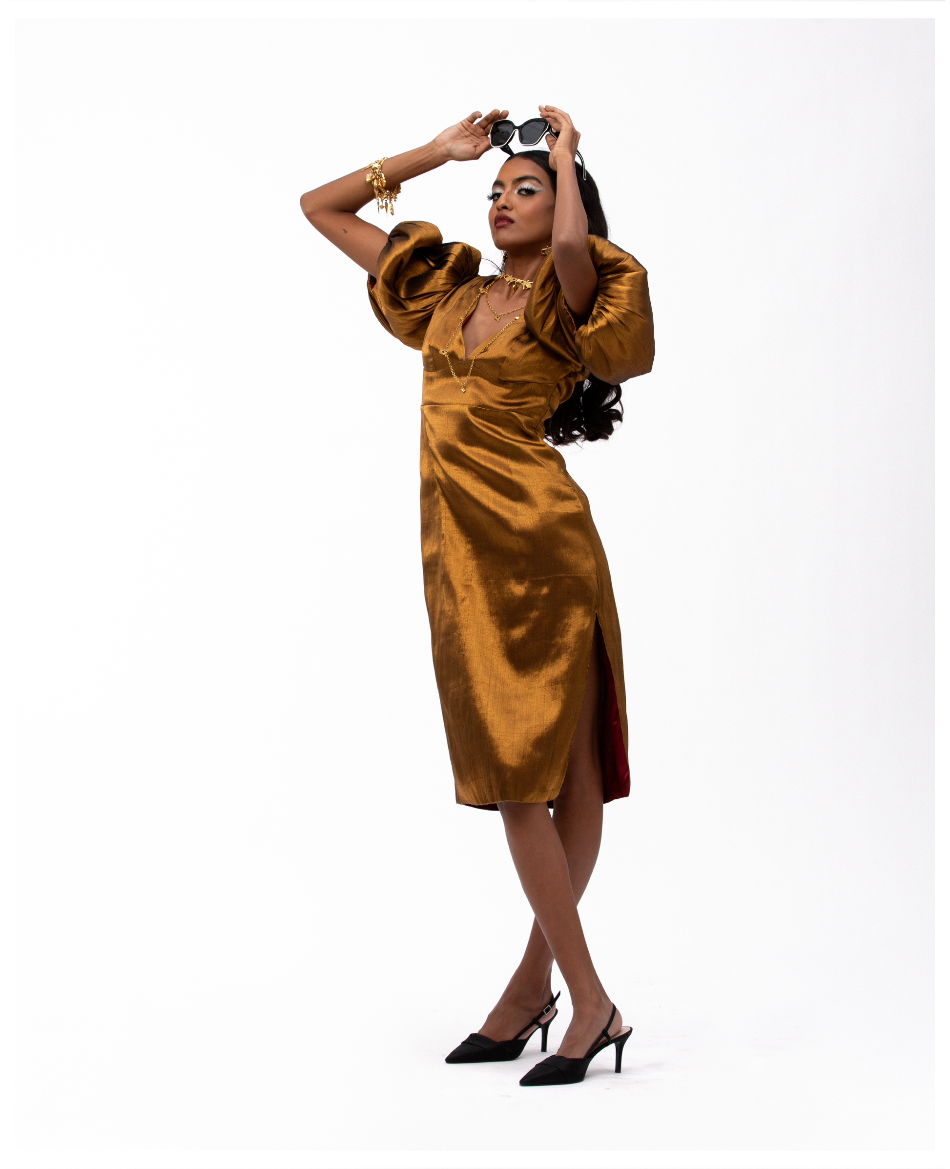 Nal Dress by Ramruki, made using Gold Tissue, and lined with Satin designed just for you with loads of love, and sunshine.