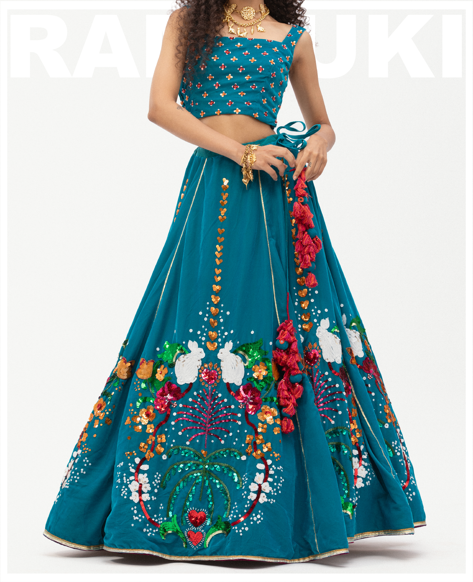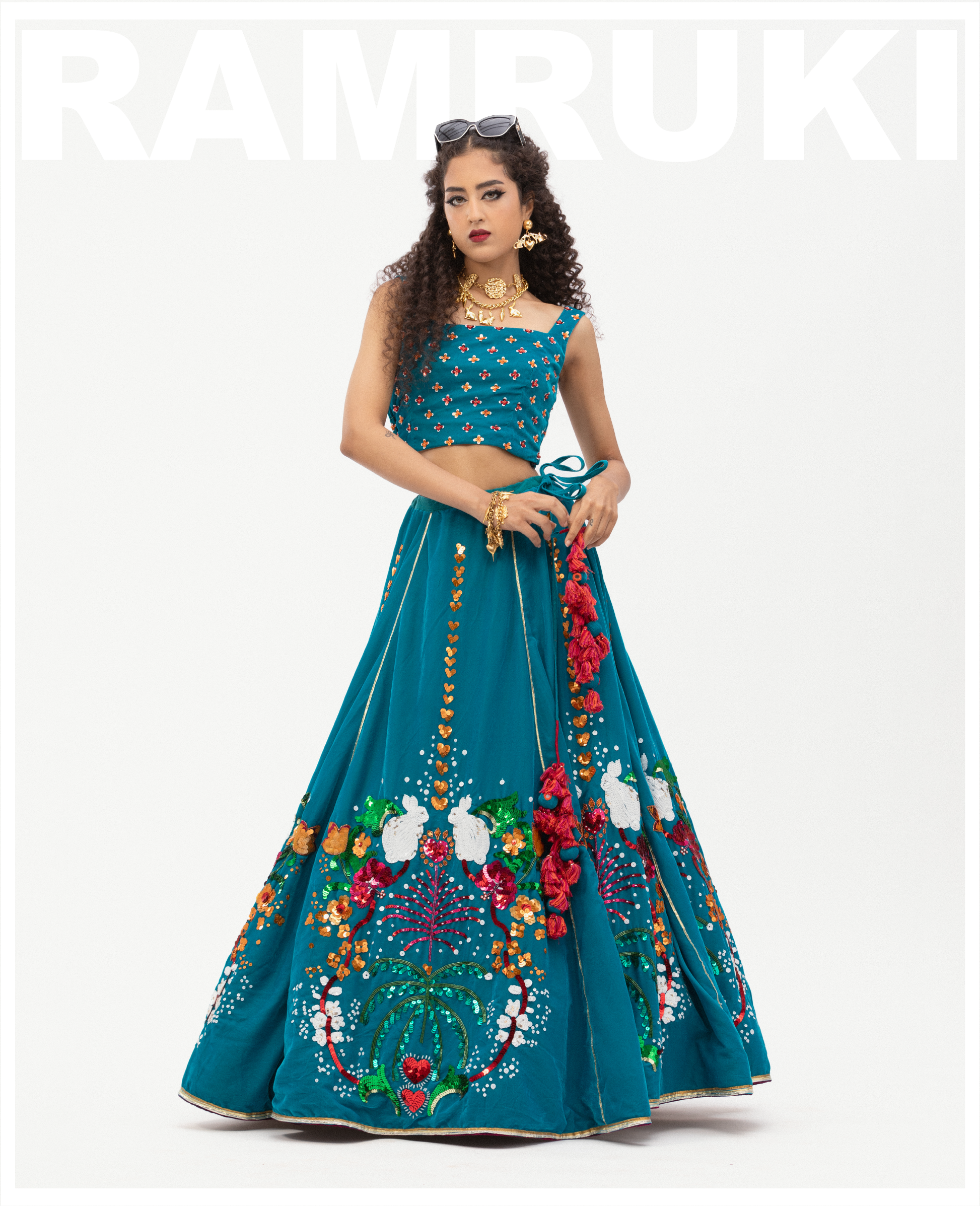 The model is wearing a Lehenga with a separate Cancan Skirt.