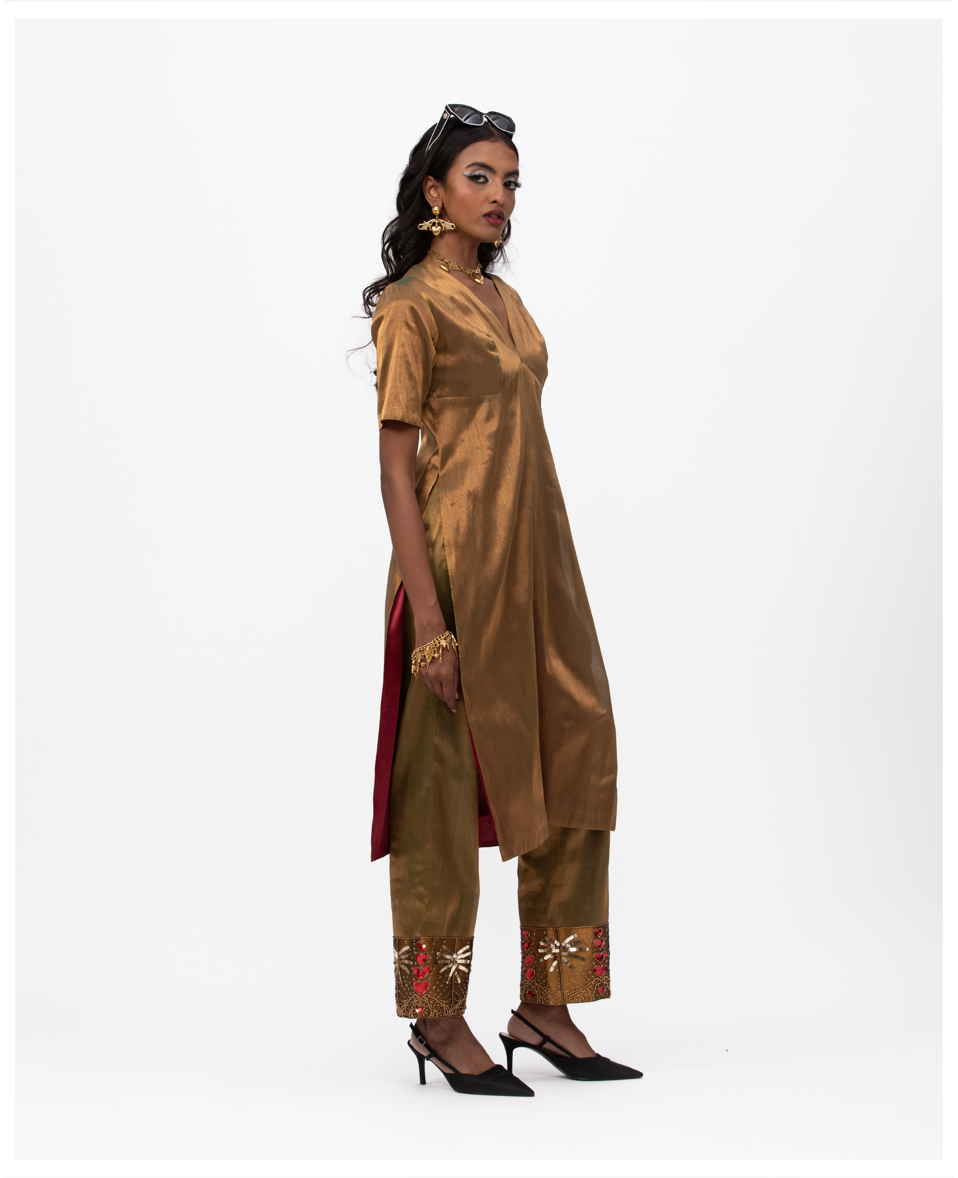 Roshini Kurta & Pant Set by Ramruki, made using Gold Tissue, and lined with Satin designed just for you with loads of love, and sunshine.
