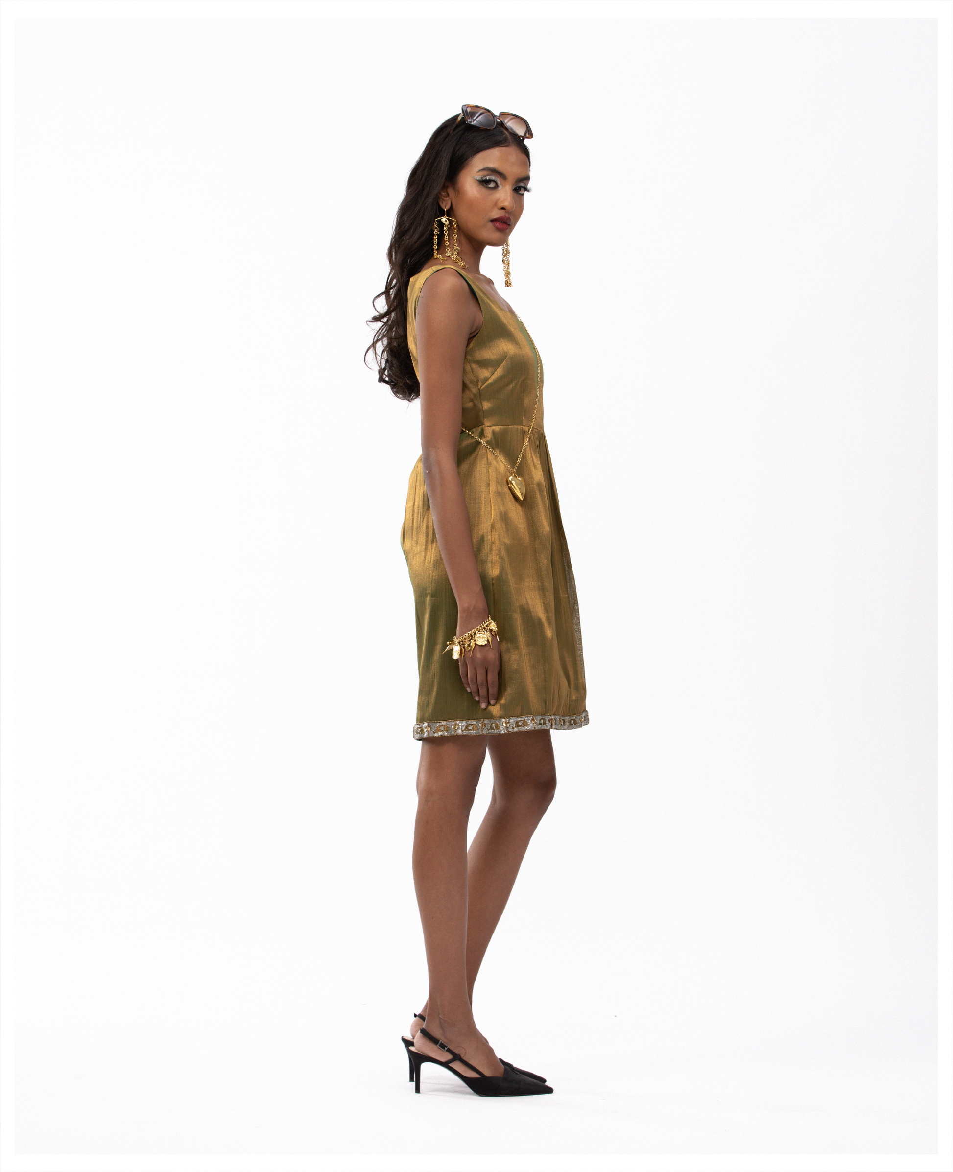 Sunlight Short Dress by Ramruki, made using Gold Tissue, and lined with Satin designed just for you with loads of love, and sunshine.