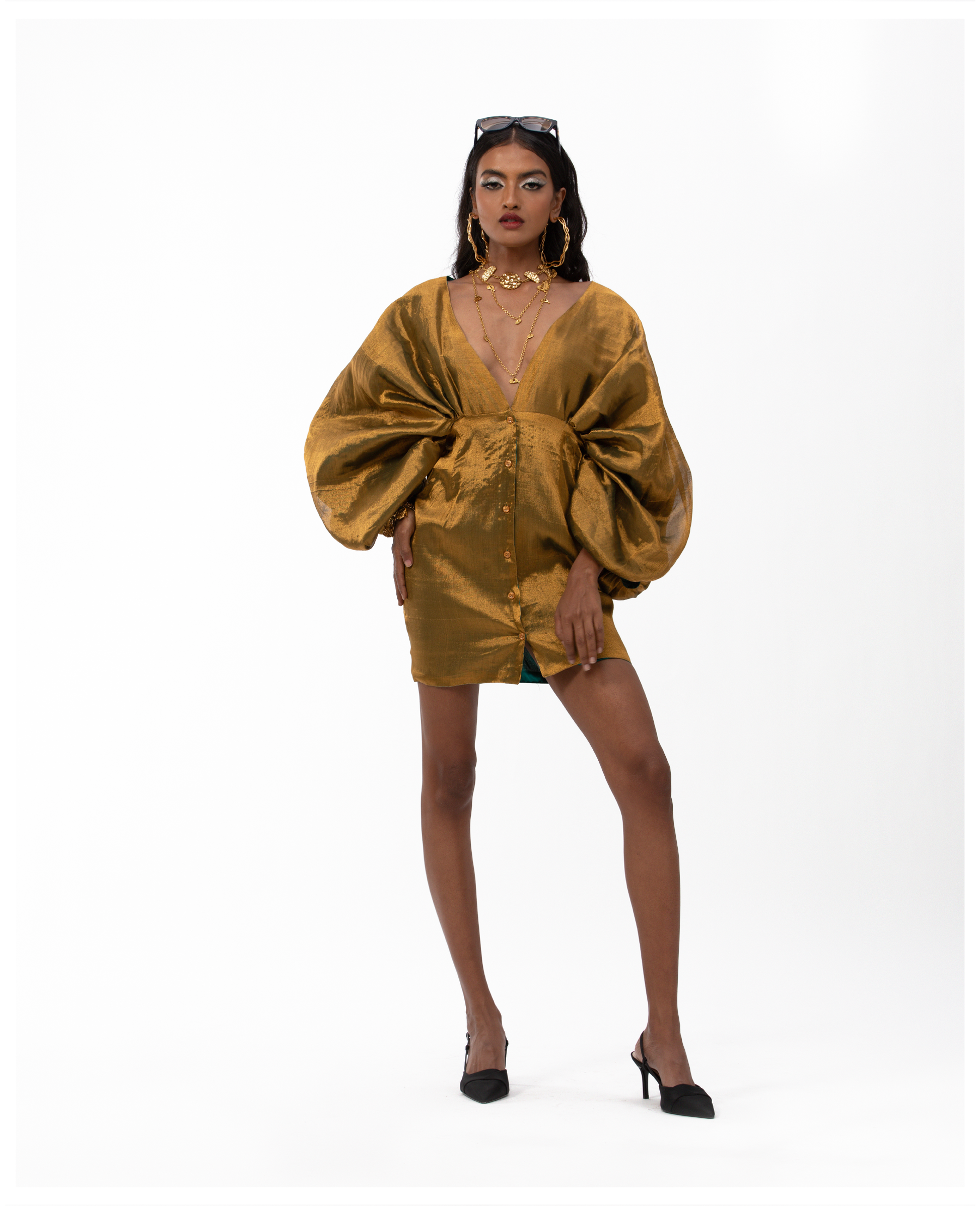 Sunny Side Dress by Ramruki, made using Gold Tissue, and lined with Satin designed just for you with loads of love, and sunshine.